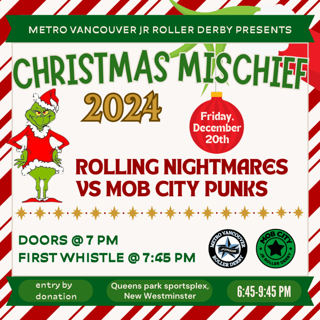 Join the Rolling Nightmares, for a pre-christmas game against our friends from Seattle, Mob City Punks.